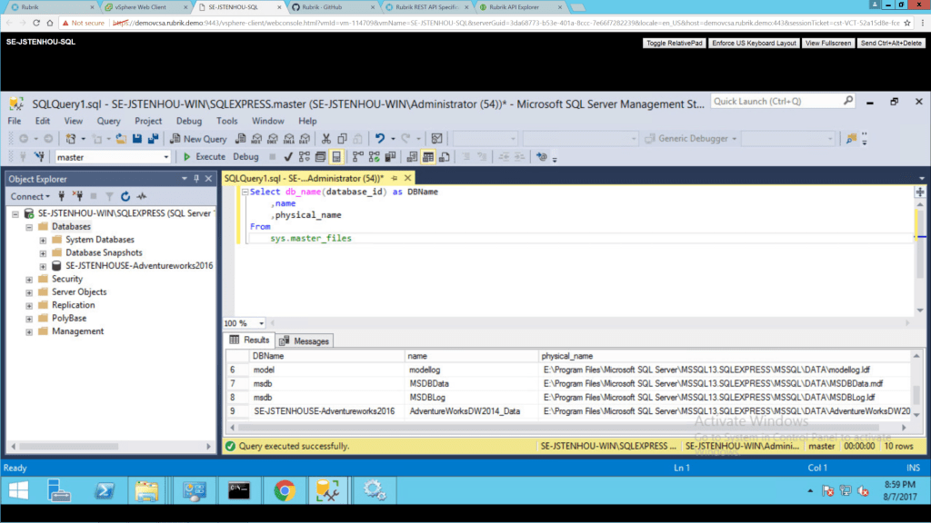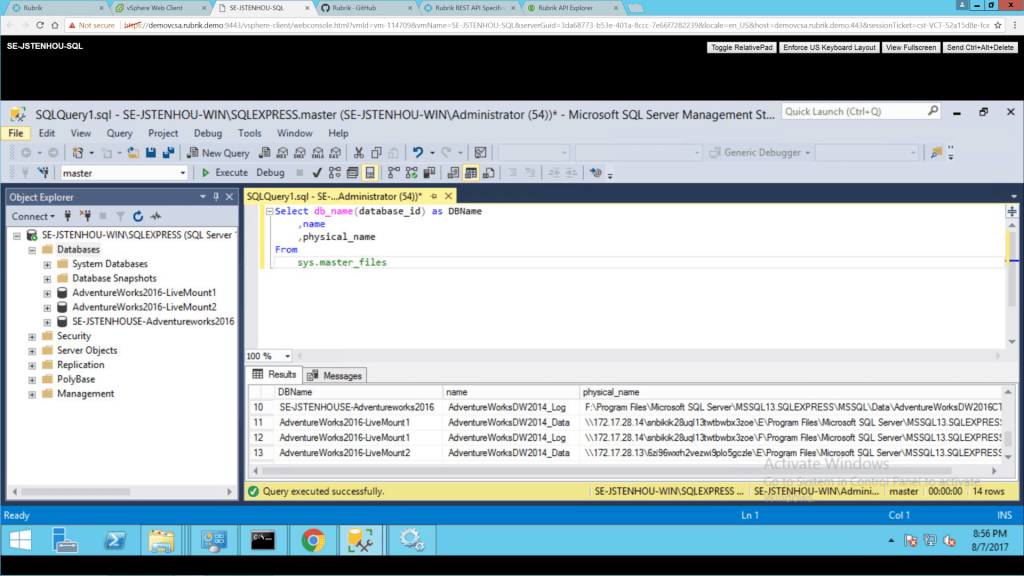 How many times in your career have you tested something that totally blew you away? Your mind racing with use cases both past and present. The first VM you created? Check. Your first vMotion? Check. Your first storage vMotion? Check. But what next? I just found one to add to my list and its SQL Server Live Mounts in Rubrik Alta (4.0). So what exactly is it and why is it so amazing? Glad you asked, read on!